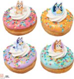 DecoPac Bluey So Much Fun Rings, Cupcake Decorations Featuring Bluey, Bingo, Bandit, and Chilli, 3D Food Safe Cake Toppers – 24 Pack