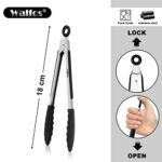 The terrible experience you may encounter when using ordinary food tongs× Difficult to clean.× Rust.× Damaged cookware. ×Easy to bend or break. × Bacterial Growing in it× Heat intolerantWalfos silicone tongs have none of those disadvantages. Conversely, they have many advantage.√Food Grade, BPA Free and healthy for using. √Heat resistant up to 480°F. √Will never rust and will not melt. √1.00mm thick stainless steel. √Easy to clean and dishwasher safely. √Pull ring design is convenient for drying and storage. √multiple uses. Give it a try! You will find it amazing!—– Our Guarantee —–We Offer An Iron-Clad 3 Tier 100% Money Back Guarantee:1 .If you’re not satisfied with our products for any reason, ship it back and we will refund your money 2. If the product breaks or is damaged, send it back and we will replace it FREE in time. 3. Even if you lose the products,just let us know and we will send you a replacement for free! ABOUT WALFOSThe WALFOS Brand is focusing on HIGH QUALITY kitchenware products all the time. Here at WALFOS, the quality of our products and the satisfaction of our clients are the two greatest passions of our brand, therefore we will do our best to bring you top quality items at a competitive price.